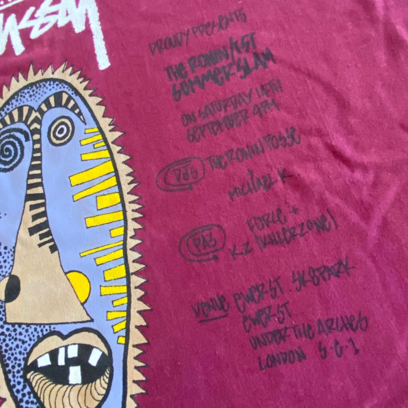 TShirts I Screen Printed for Stussy from Goldie for an private Stussy Event featuring DJ Ron. Limited 100 Tshirt only for the event! Invitation Only.