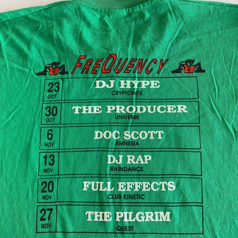 Frequency Tshirts i use to print for them for thier monthly events with dj line up on the back. i Use to sell my rave tshirt at the event, every Friday night, my tshirt brand Cut Thoat.
