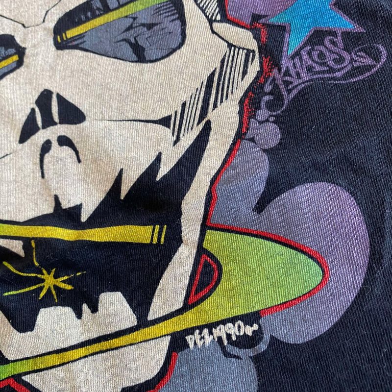 Tshirt i printed for Ragga Muffin clothing brand, by Designer Clive Woodstock who design the Tshirt for the London Brand Big Broad and Massive. This tyhsirt was sold as a part of a collection thayt were sold at all the major Carnival and i was lucky to travel with them and sell my cut throat tshirt. Glastobury back in 1990 was a year to remember. They kept the stall open 24hours for 5 days. we had no sleep lol We blagged our way in and just set up with no permission. Could not do that nowdays. Shout out to Biggie, Footies and Clive RIP.