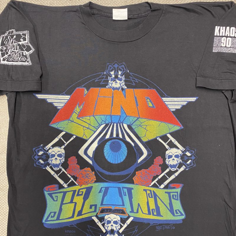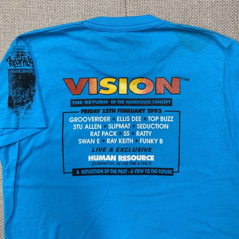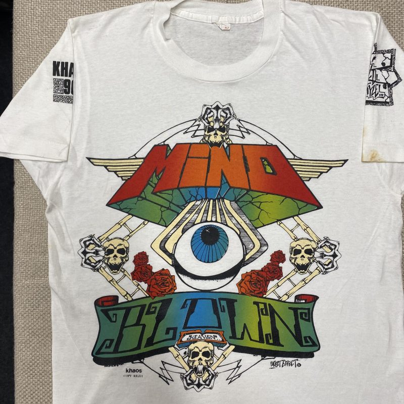 I screen-printed these T-shirts for Bizarre Inc as part payment for booking them at an event I organised at Wolverhampton Civic Hall. The lineup included Goldie, DJ SS, and Kemistry & Storm from Metalheadz, marking their first DJ set. I also have a VHS recording of the event.