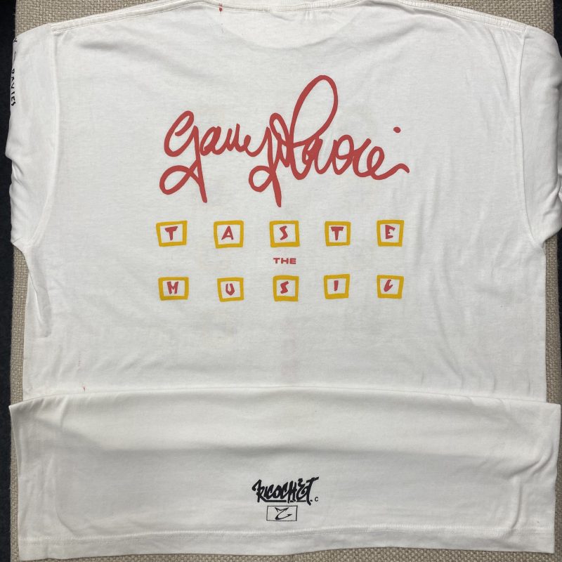 I hand screen-printed T-shirts for Radio 1 DJ Gary Davis for his new afternoon show, Let’s Do Lunch. The design was by Goldie and I Screen Prints the Tshirts back in 1993