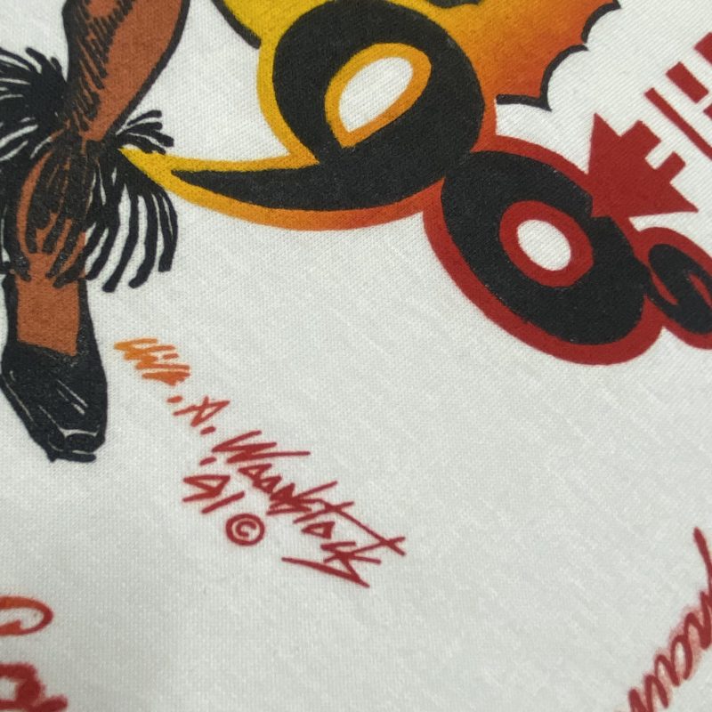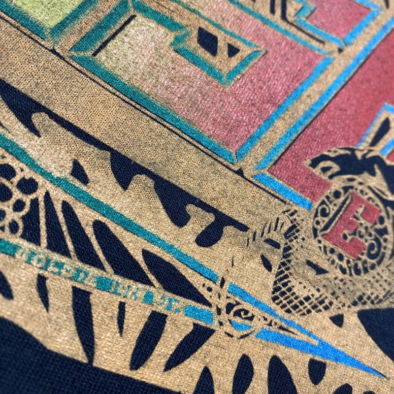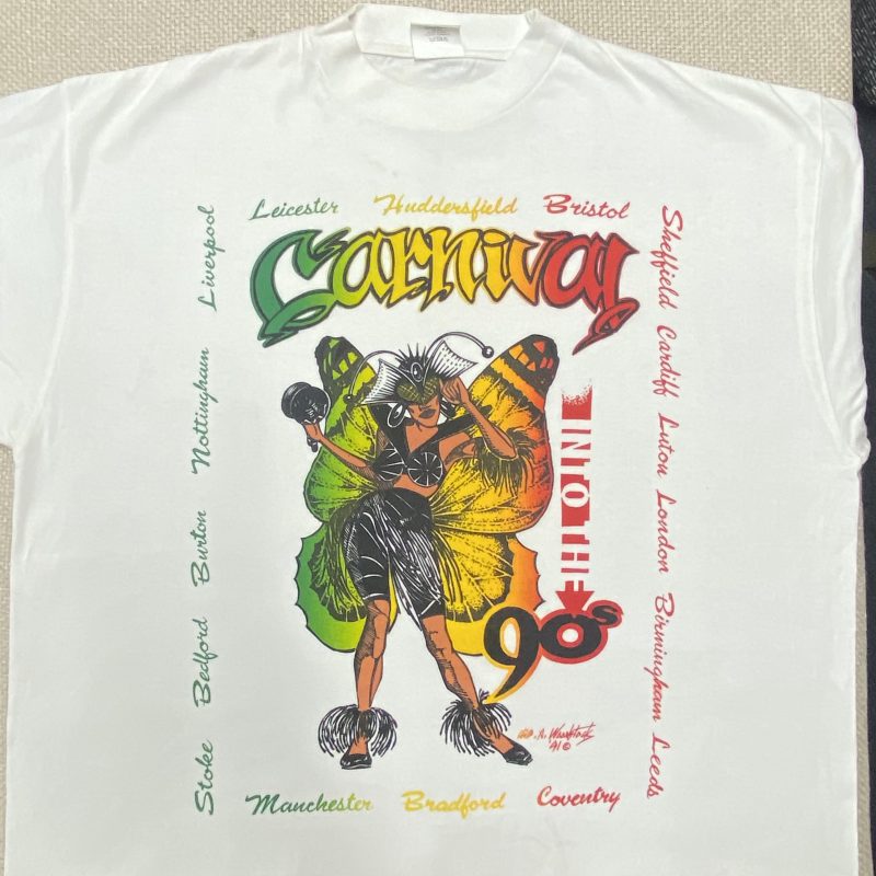 I screen-printed this T-shirt for the Ragga Muffin clothing brand, designed by Clive Woodstock, who also worked on London brands Big Broad and Massive. The T-shirt was part of a collection sold at major carnivals, and I was lucky enough to travel with the crew, selling my Cut Throat T-shirt. Glastonbury 1990 was unforgettable—our stall stayed open 24 hours for five days, running on no sleep! We even blagged our way in and set up with no permission—something you definitely couldn’t do today. Shout out to Biggie, Footies, and Clive (RIP).