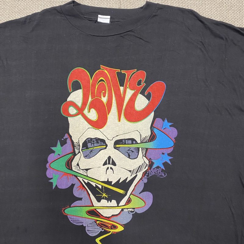 LOVE SKULL was designed by legendary graffiti artist Dez TWC (RIP) of The Wild Criminals and the Underground Graffiti Federation. A student and crew mate of Goldie (Metalheadz) This was a part of my cut throat T-shirt range is use to sell at raves back in the early 90s