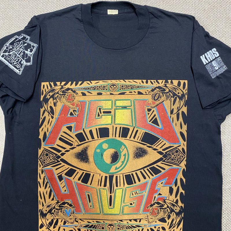 These T-shirts were hand screen-printed for Goldie of Metalheadz and feature an iconic Acid House design. The tie-dye versions gained recognition in newspapers during the height of the Acid House rave scene.